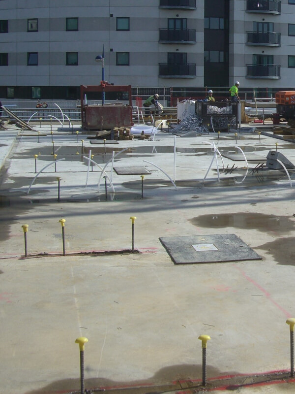 Elimination of most downstand beams resulted in a significant reduction in concrete volumes and reinforcement quantities.